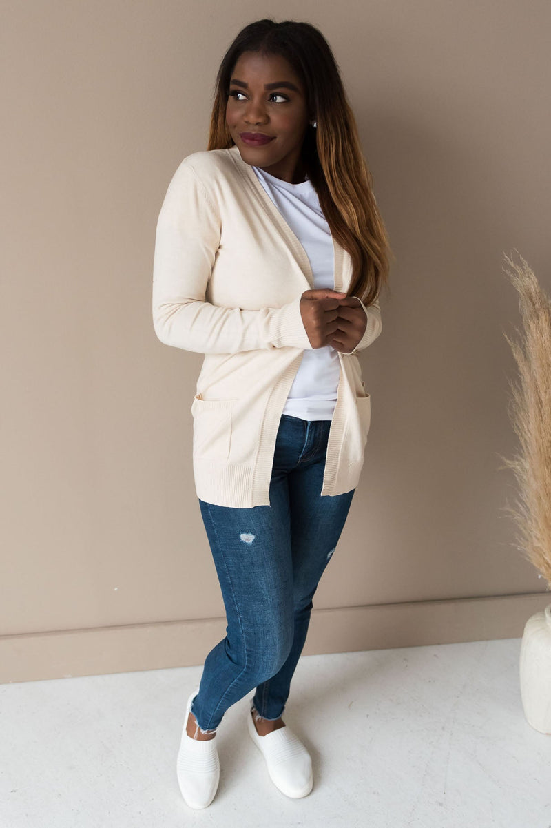 Cold weather is here! In the chilly winter & spring months we love having cardigans to accessorize with, and this one is perfect for that! We simply adore the buttery soft material, sleek oatmeal color, long sleeves, and pockets!! Trust us, you are going to love this one, along with its cozy feel and fit!