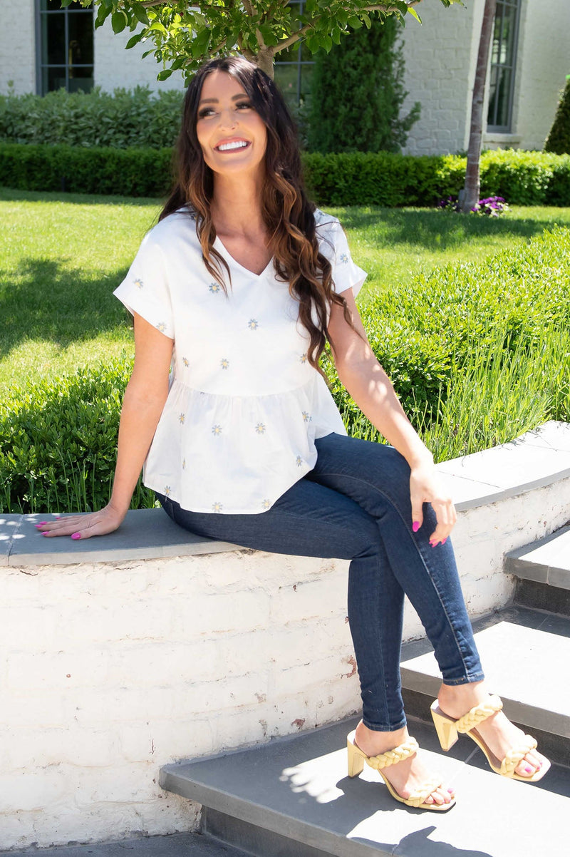 Say hello to this new cutie! This blouse will give you all the feels! You'll feel absolutely trendy, comfortable, stylish & modest, when you slip into this one! Featuring short sleeves and a classy peplum fit and the sweetest floral embroidery detailing! You do not want to let this one pass you by! Get yours today.