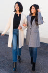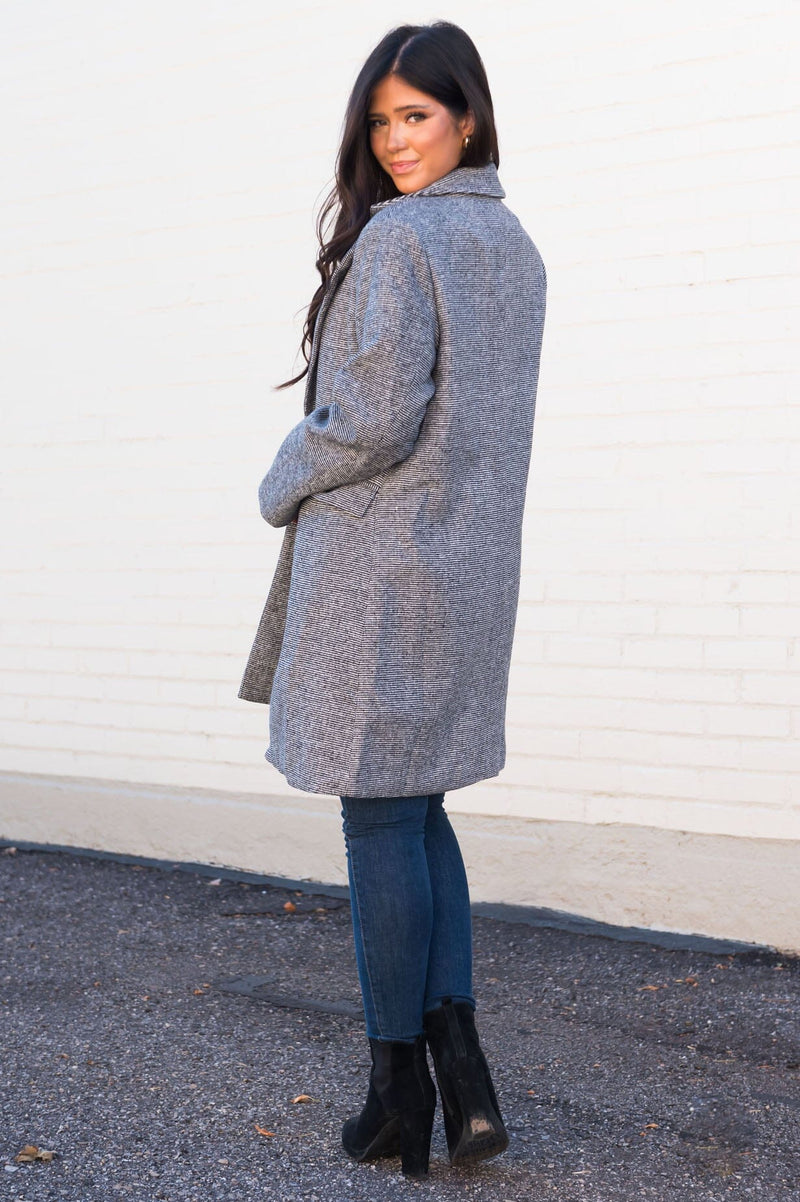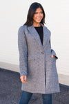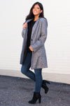 Ready for your new fall favorite!? This gorgeous black & white patterned jacket has a lovely collared neckline, comfy cozy material, pockets and long sleeves! This classy coat is the perfect addition to every wardrobe!