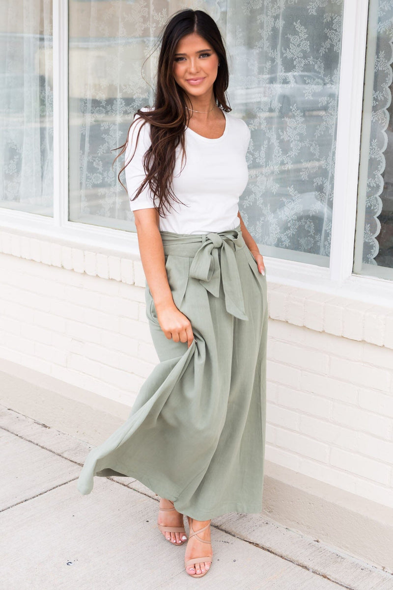 Keep your days and nights effortlessly classy with this new maxi skirt! We adore the gorgeous dusty sage color perfectly accented with a stunning tie waistline detailing. Regardless of what you pair this beauty with, you're bound to look gorgeous!