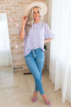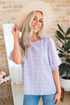 We love our new Youthful Heart blouse! It is so cute and playful, we have never seen such beauty! It features a gorgeous lilac color, large textured polka dots throughout, half length puffed sleeves, and a high rounded neckline! This blouse is sure to sell out, so hurry and gets yours today!