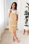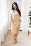 This chic overall dress is perfect to wear all year long! We love that this macaroon cream corduroy overall dress can be paired with any accent color. Featuring a square neckline, cute button and pocket details, and of course overall straps that give you a fashionable nursing friendly option!